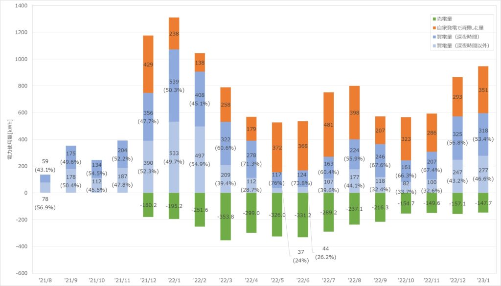 このまま電気代が上がらなければ、春先は0円生活ができそうです(売電単価は10年固定が保証されています)